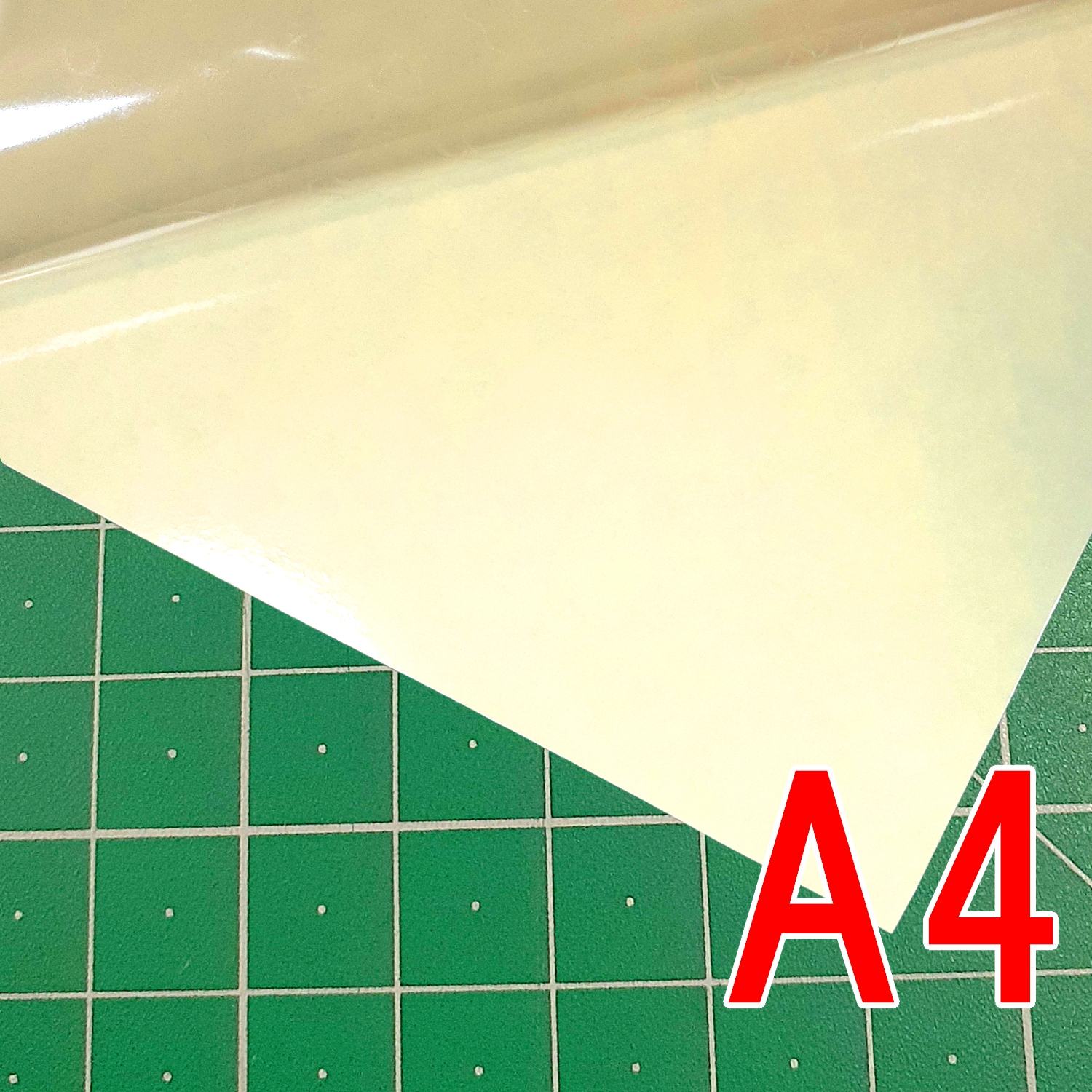 A4サイズ図案用の両面テープ サイズ:A4+ (約22×30.5cm) 配送方法:クリックポスト1箱(+200円) 注意事項 ・手動切断ですので水平垂直ではありません ・A4サイズより少し大きなサイズになります ・表面(接着面)は透明フィルム、裏面は黄色の剝離紙になります。 その他のサイズ 両面テープ A4(3枚入り) 両面テープ A3(2枚入り) 両面テープ A2(2枚入り) 両面テープ A1(1枚入り)